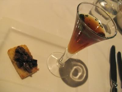We started with an amuse bouche of mushroom veloute.  It was silky smooth, with nothing distracting from the earthy flavour of mushrooms.