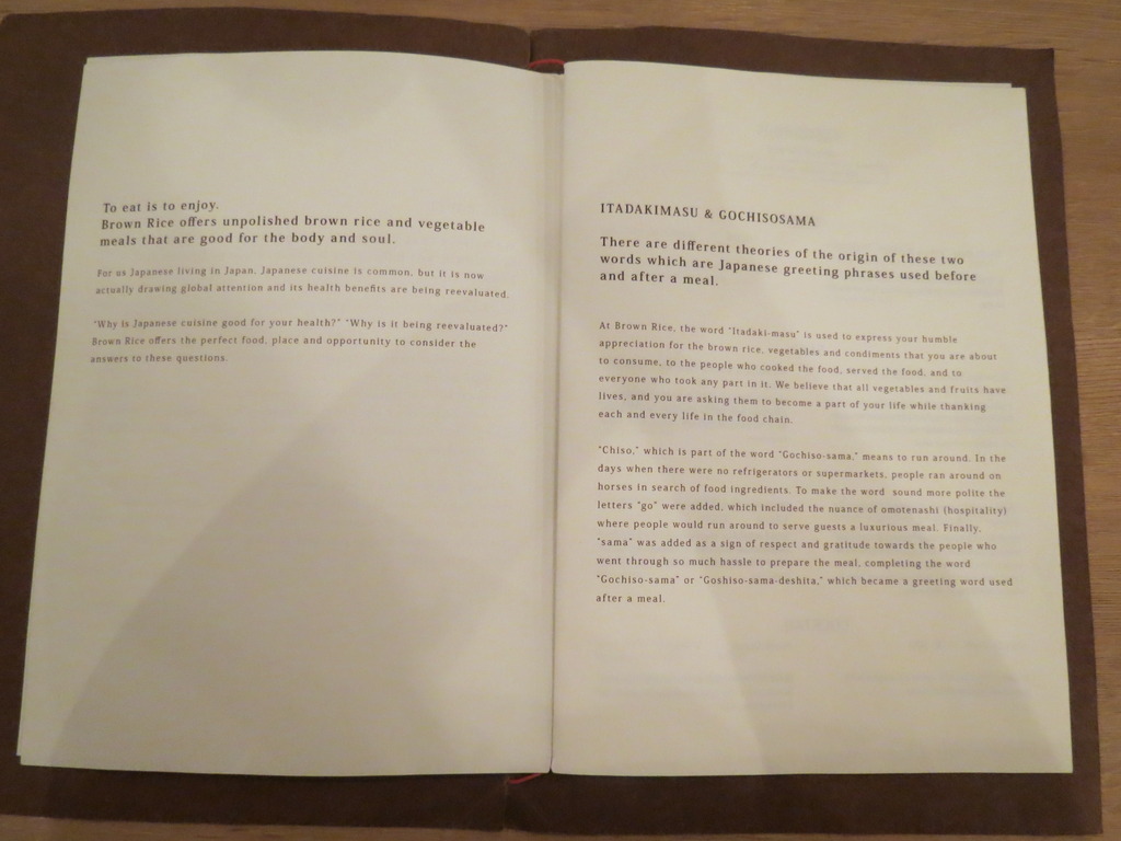We'd visited Ain Soph last year for dinner and so knew roughly what to expect. The menu mostly contains English translations, has many instructive and attractive photos and appears to be entirely vegan, so it's not too difficult to pick out a meal. Our waiter, however, didn't speak any English and valiantly continued to speak Japanese to us throughout our visit even though we tried to make it clear right away that we couldn't understand.