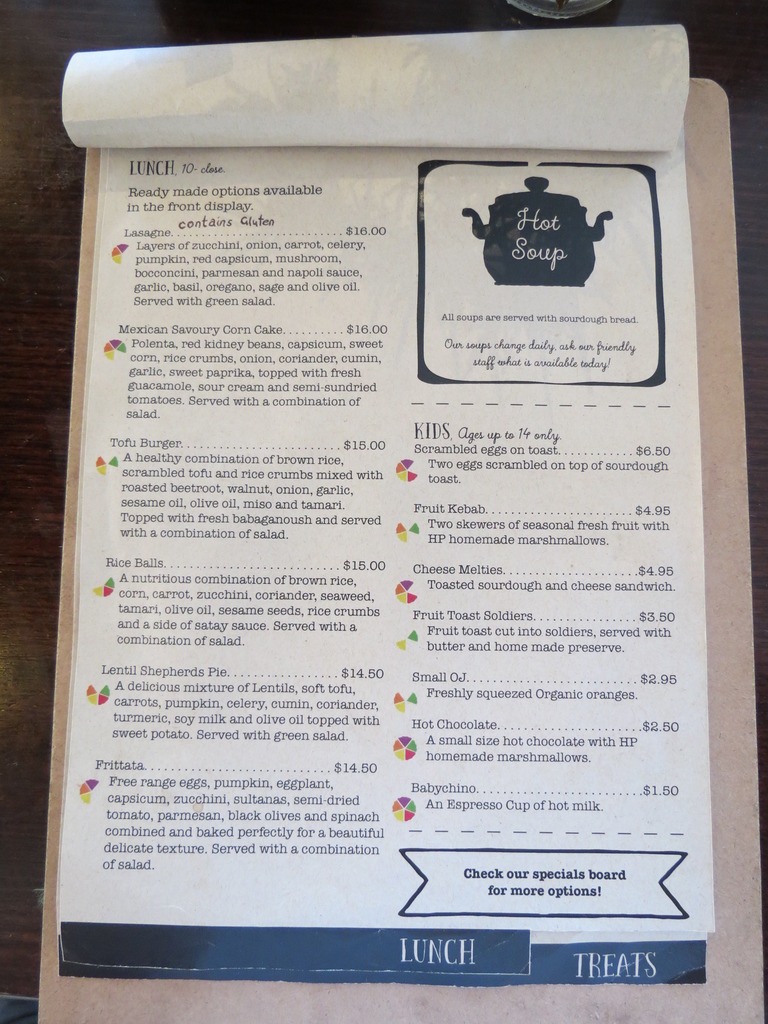 We received cheery and efficient service, and weren't hurried out the door. It's lovely to see this vegetarian cafe holding its own with unpretentious, fresh foods.